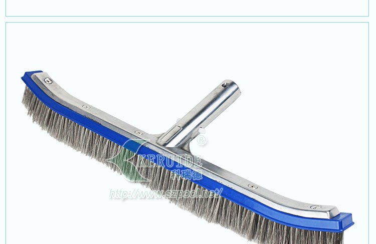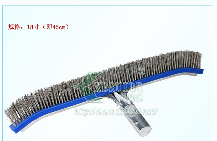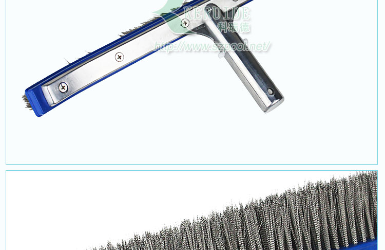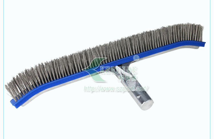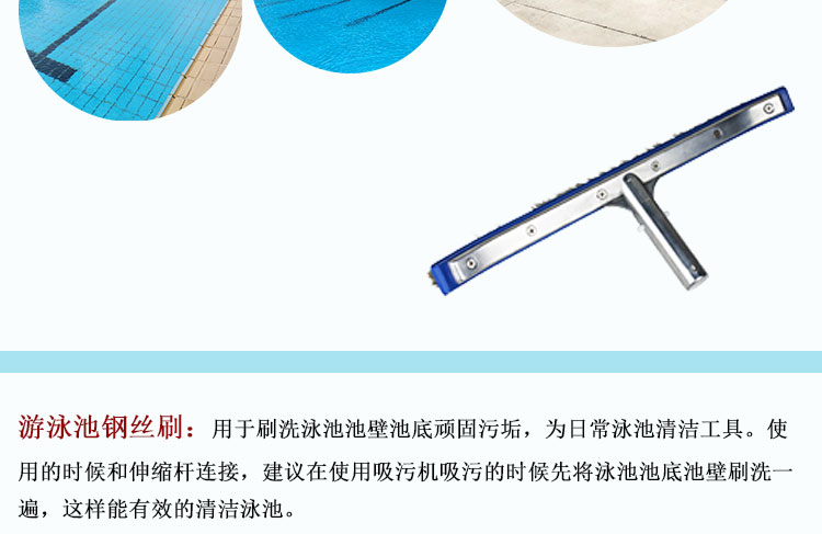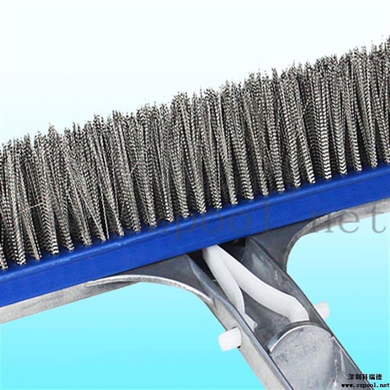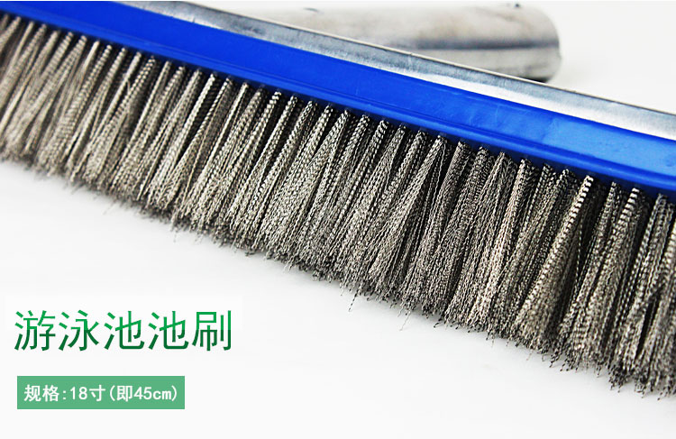 游泳池鋼絲刷:主要用于清潔游泳池池底及池壁頑固污垢或是青苔的鋼絲刷子。游泳池池刷材料為鋼絲,又稱游泳池鋼絲刷,用于刷洗泳池池壁池底頑固污垢。