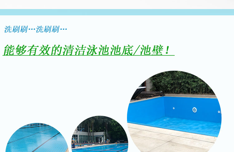 為日常泳池清潔工具,使用的時候和伸縮桿連接,建議在使用吸污機吸污的時候先將泳池池底池壁刷洗一遍,能多方面的清潔泳池。