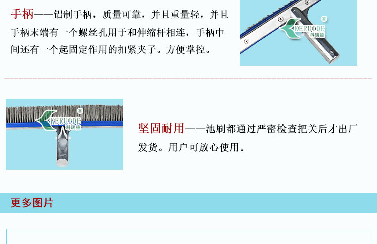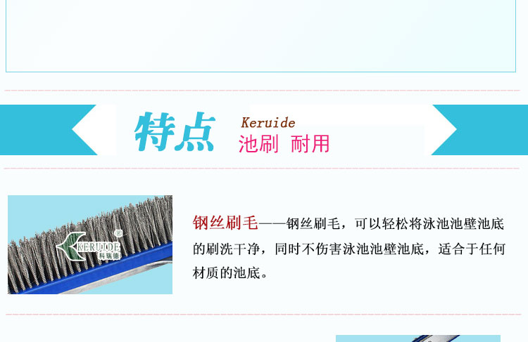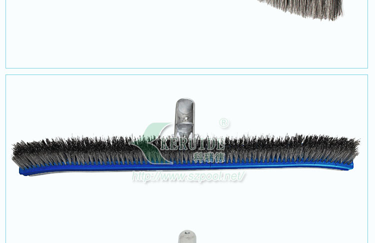 【刷毛】:特制鋼絲刷毛,可以輕松將泳池池壁池底的刷洗干凈,同時不傷害泳池池壁池底,適合于任何材質的池底。