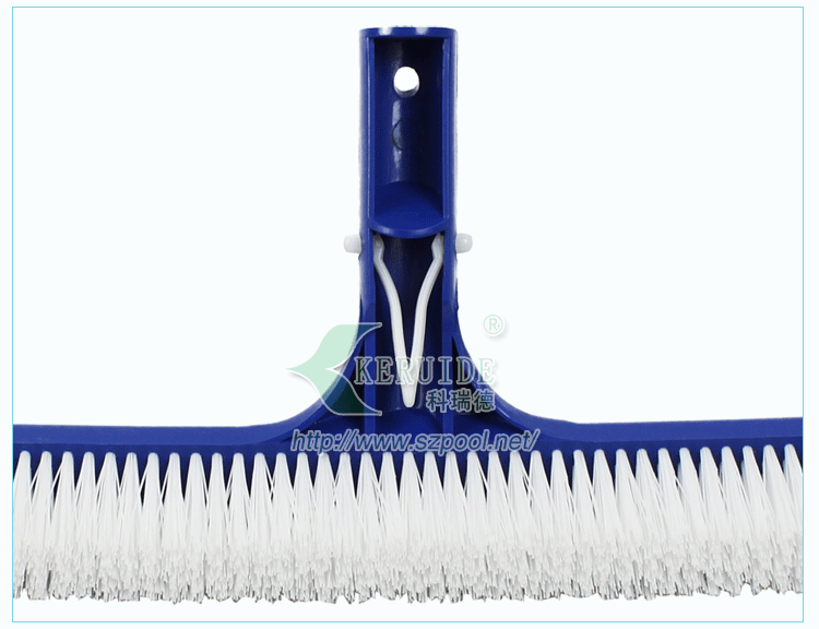 游泳池池刷:用于清潔游泳池池底及池壁的刷子,屬于游泳池清潔用具或游泳池清潔用品。一般和伸縮桿相連使用。主要用于清潔游泳池池底及池壁,可以刷除各種附在池底或是池壁的污垢或是青苔。