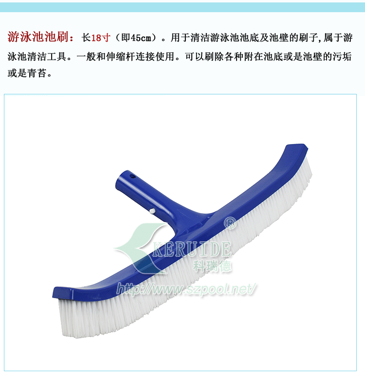 該池刷能刷落池底及池壁的青苔藻類等,適用于泳池、桑拿池等。使用方便、簡單。