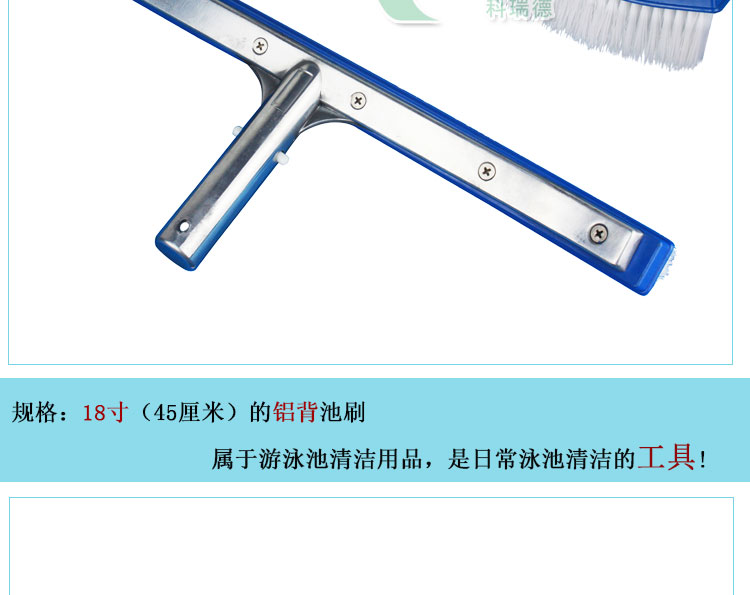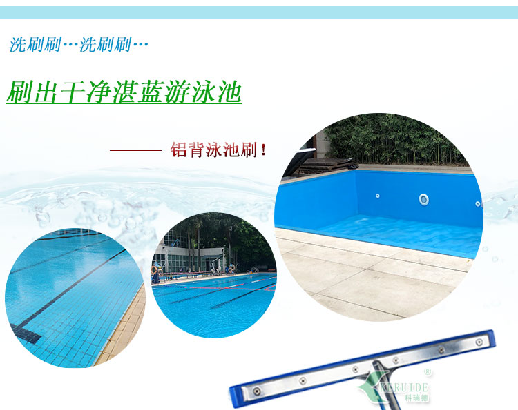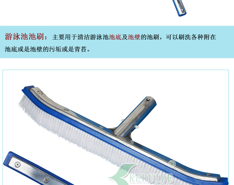 游泳池池刷:主要用于清潔游泳池池底及池壁的用塑料毛刷,可以刷除各種附在池底或是池壁的污垢或是青苔。