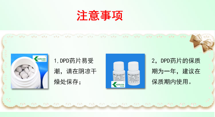 1,DPD藥片易受潮,請在陰涼干燥處保存;
