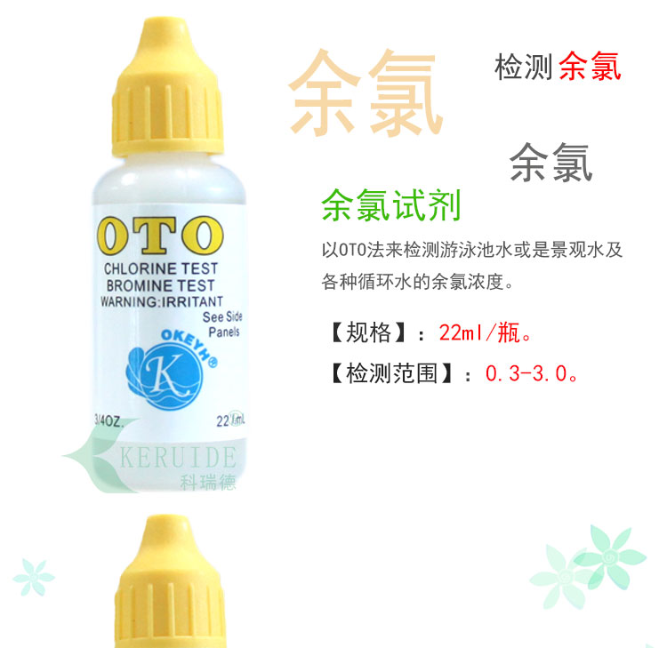 余氯試劑,是二合一比色計的配套余氯測試劑,以OTO法來檢測游泳池水或是景觀水及各種循環水的余氯濃度,其顯示的顏色與二合一比色計所配套的比色皿上色卡相對應。