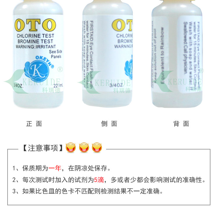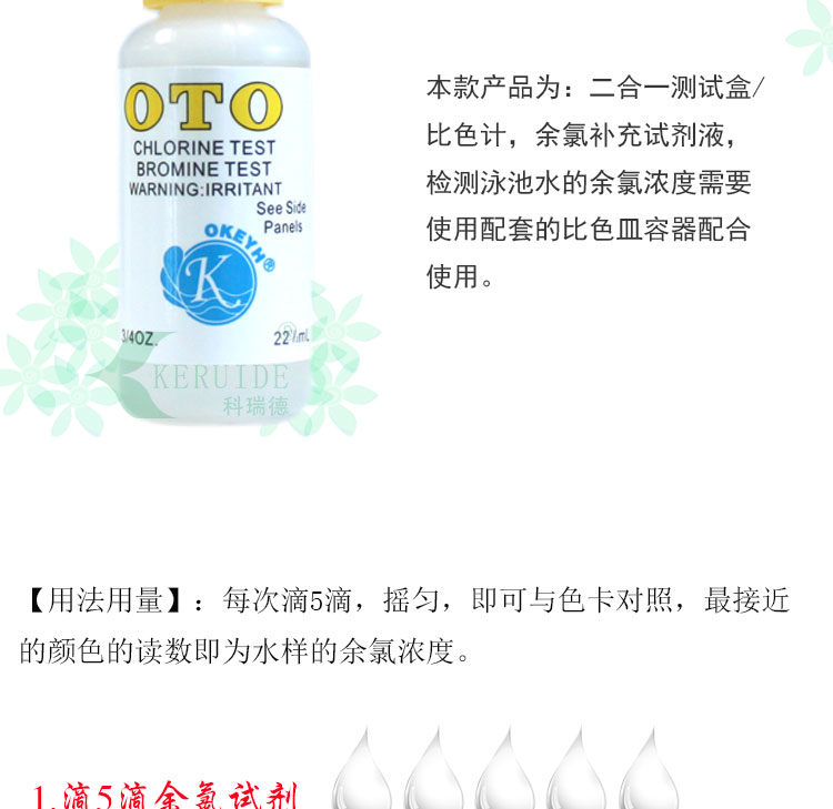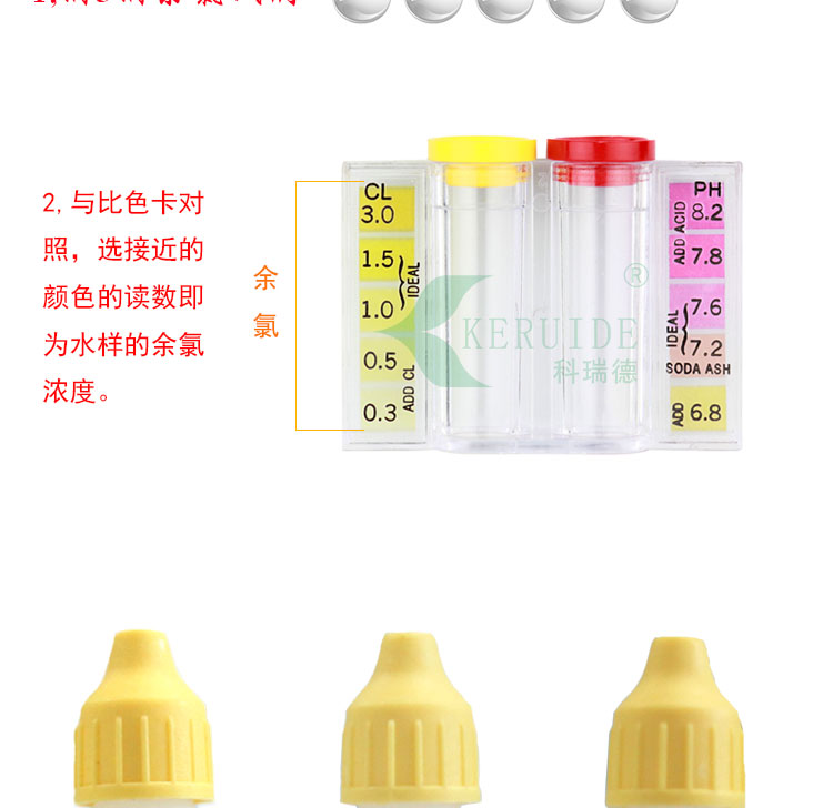 2、每次測試時加入的余氯試劑為5滴,多或者少都會影響測試的準確性。