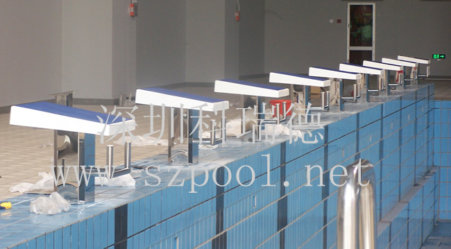 以下是我公司游泳池出發臺在深圳福田體育公園室內游泳館安裝過程及實際效果圖: