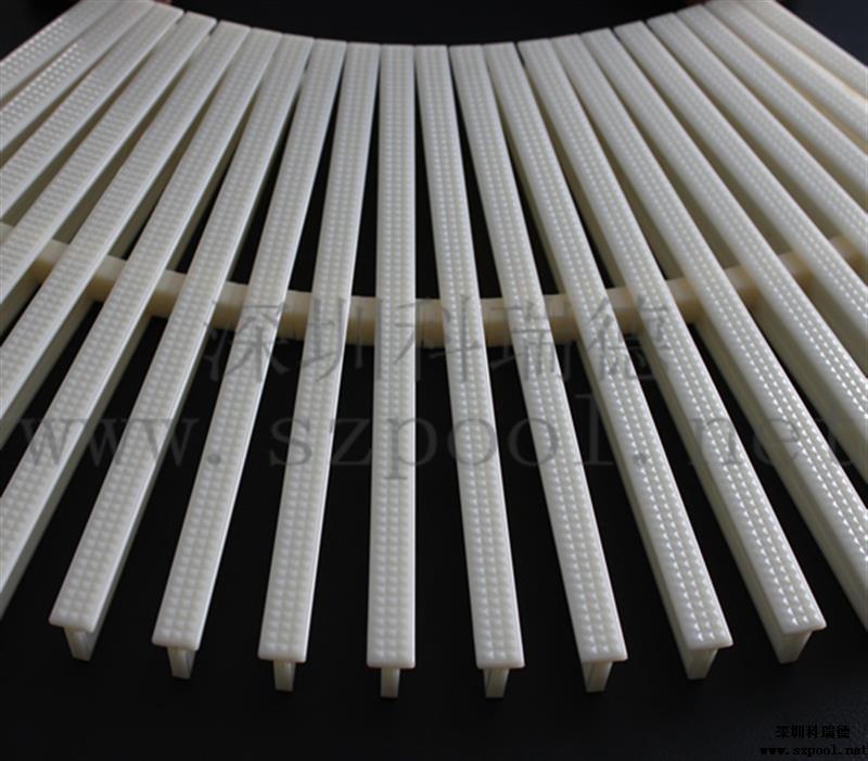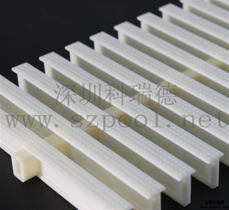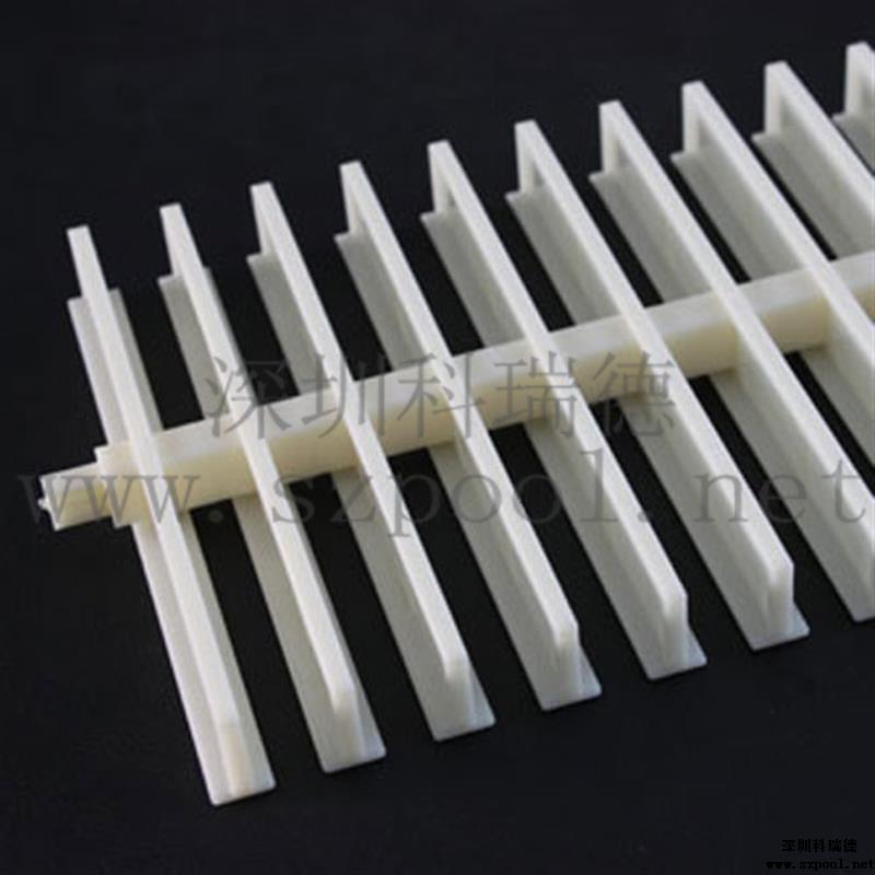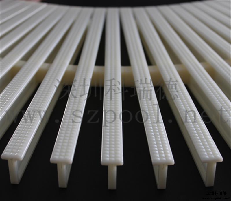 游泳池格柵:游泳池格柵是作為游泳池四周排水溝的塑料蓋板,屬于游泳池工程配件的一種。也叫格柵,防滑渠面格柵,游泳池排水溝格柵。
