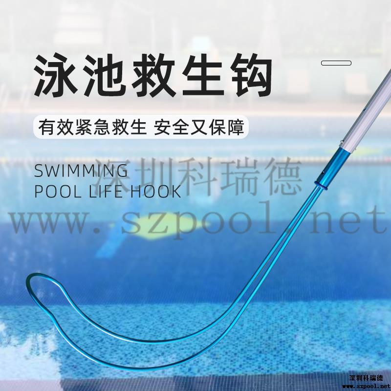 游泳池救生鉤,用于游泳池救生時使用的救生器材,主要是在游泳池有人溺水時,救生員在岸邊可以使用救生鉤較快地在岸上將溺水者鉤到池邊進行救助。一般與伸縮桿連接使用。