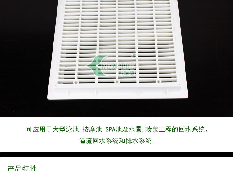 泳池總排:是用于游泳池排水口的面板,一般安裝在池底或池壁,用于排水的。也在叫做回水口。