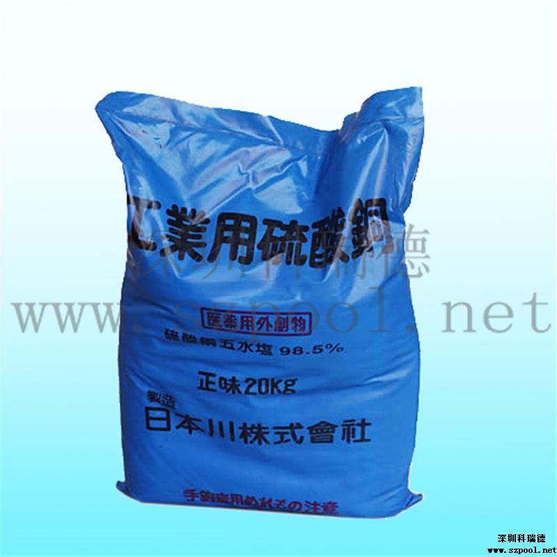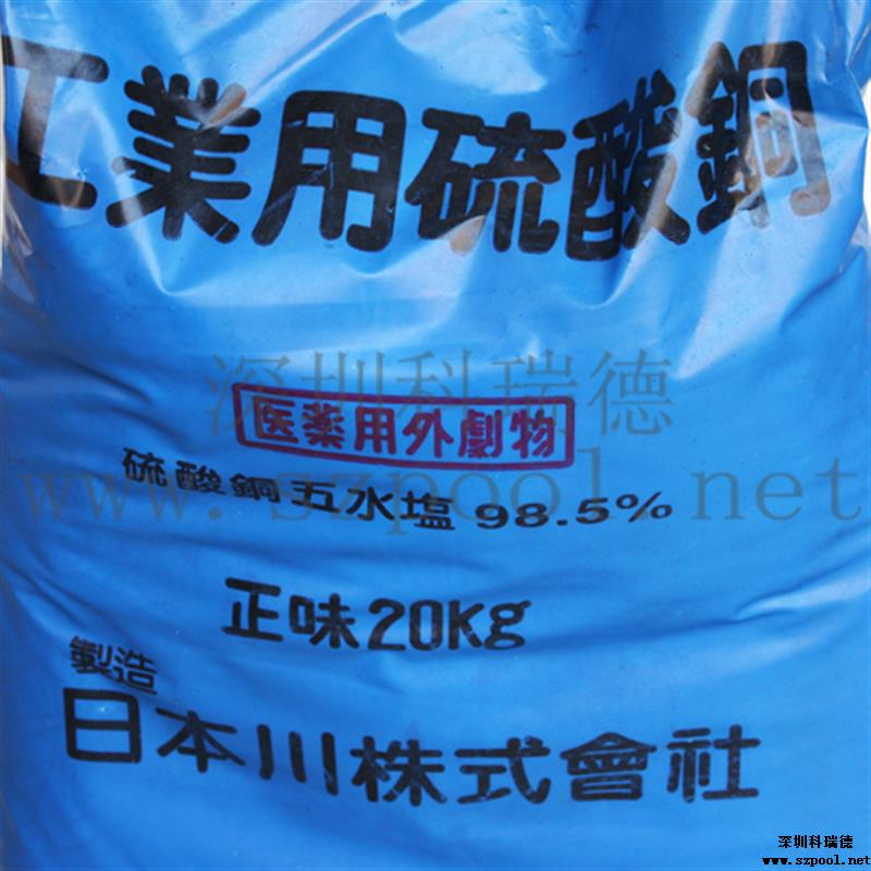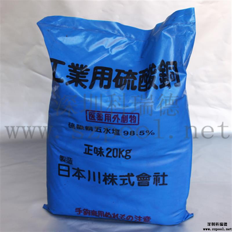 硫酸銅滅藻劑屬于游泳池水處理藥劑的一種,也叫硫酸銅殺藻劑,化學式為CuSO4·5H2O,為藍色不對稱三斜晶系結晶或粉末。主要用作游泳池水的抑藻與殺藻。本款殺藻劑主要成分為硫酸銅,有殺藻抑藻的作用。