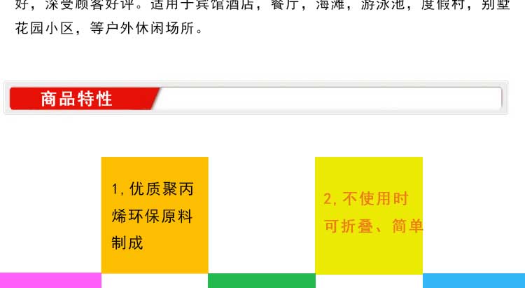 我公司供應各種休閑桌,沙灘桌,沙灘床,沙灘椅等休閑用品,適用于賓館酒店、餐廳、海灘、泳游池、別墅、渡假村、私家花園、陽臺平臺等戶外休閑場所供應各種休閑用品。