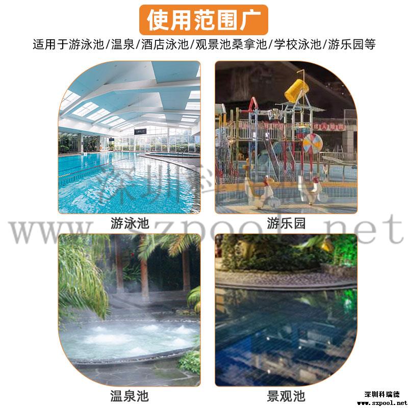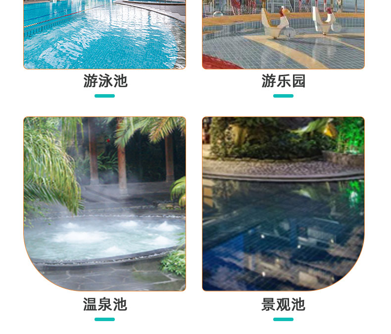 氰尿酸——使用三氯異氰尿酸消毒劑所帶入,能保持余氯的穩(wěn)定,過低則余氯下降很快,過高則使消毒劑不能發(fā)揮消毒效果,導致池水細菌超標、發(fā)白發(fā)綠等。