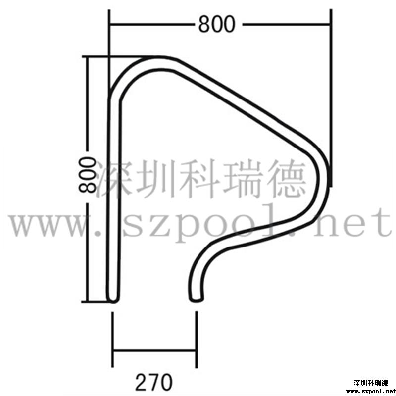 造型方面:從圖片可以看到,本游泳池扶手高位800mm,寬為800mm,安裝處口徑為270mm。比例協調,造型美觀,款式新穎,從圖中可以看到用于抓握的地方能非常契合我們的手,結構合理,此外,圓潤美的曲線設計,表面光滑,美觀而安全。
