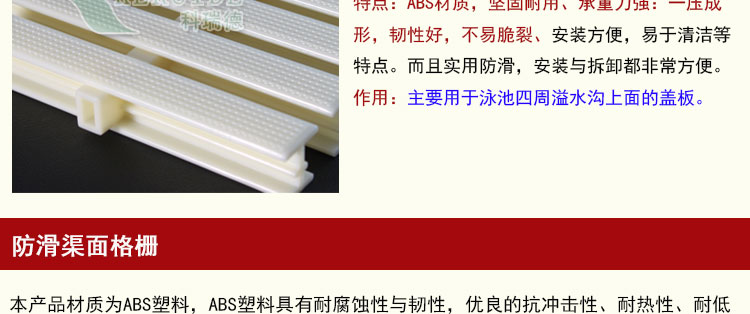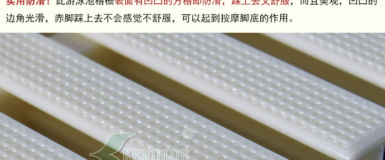 工字型游泳池格柵的特點(diǎn)為寬面格柵,單挑面寬就有24mm,游泳格柵是作為排水溝上面的塑料蓋板,游泳池格柵又叫:游泳池排水溝格柵,防滑渠面格柵,游泳池溢水格柵,簡稱格柵。