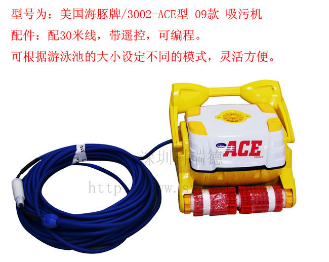海豚全自動(dòng)吸污機(jī),型號(hào)為美國海豚牌3002型 09款。配30米線,帶遙控,可編程。可根據(jù)游泳池的大小設(shè)定不同的模式,靈活方便。