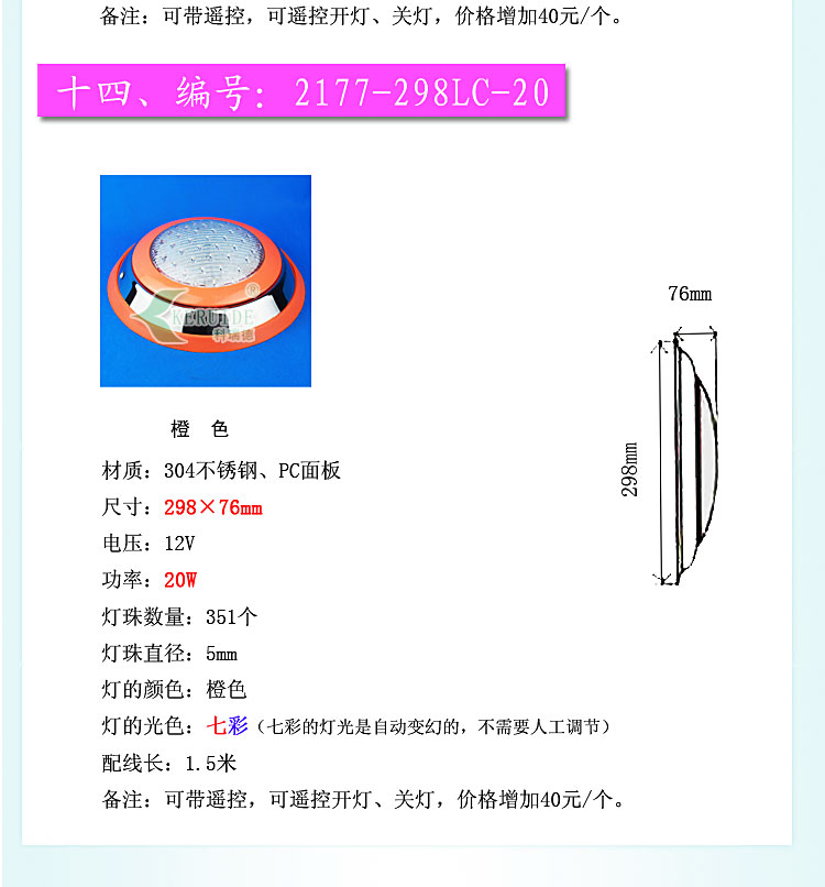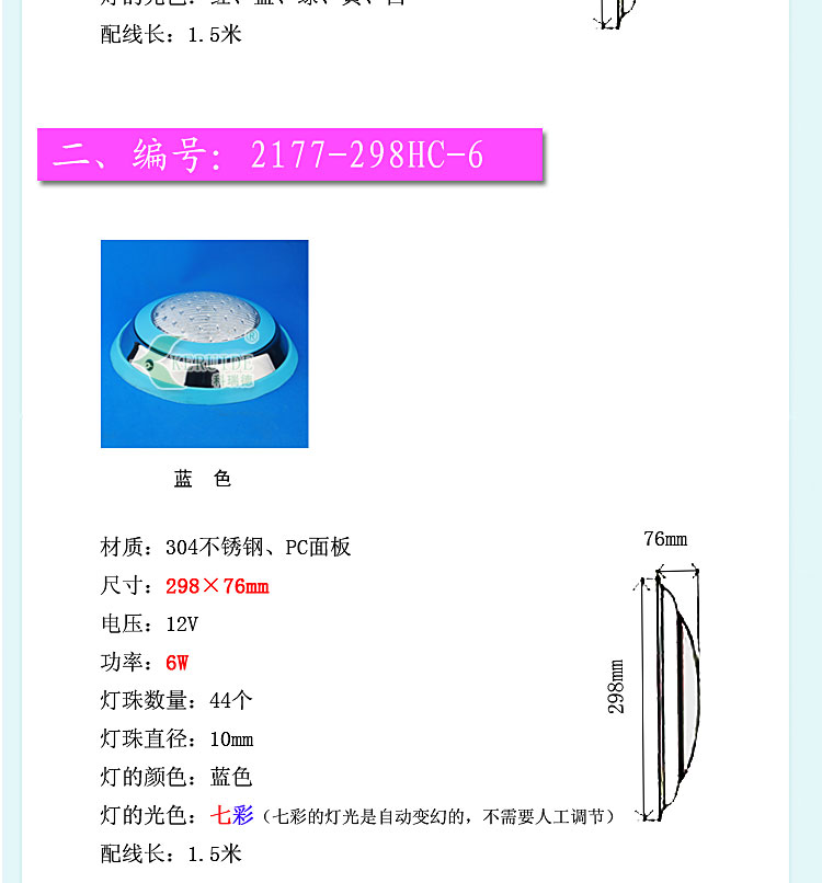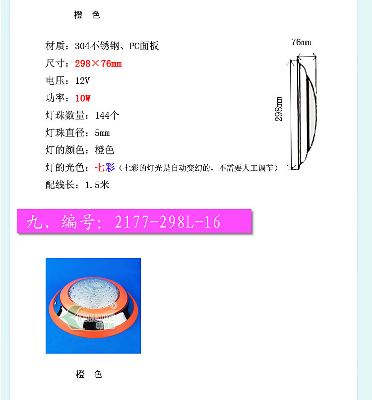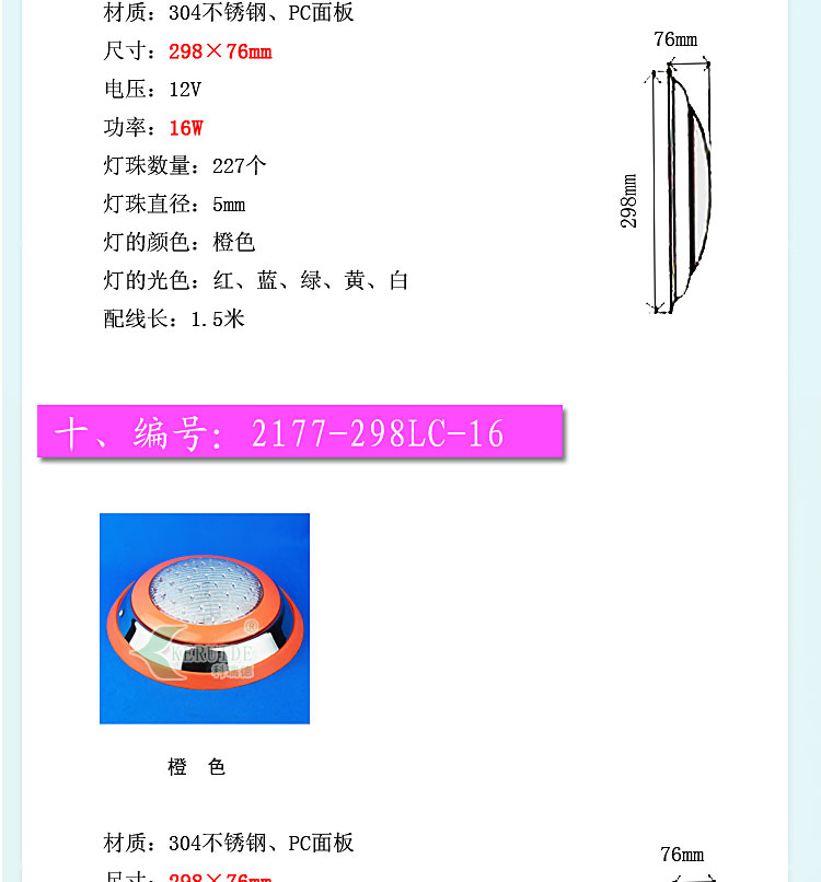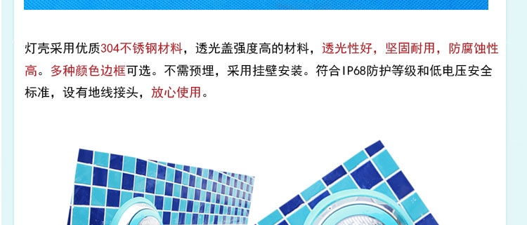 燈殼采用優質304不銹鋼材料,透光蓋改用強度高的透明材料,透光性好,堅固耐用,防腐蝕性高。防水設計,多種顏色邊可選,不需預埋,采用掛壁安裝。符合IP68防護等級低電壓標準,設有地線接頭,使用放心。