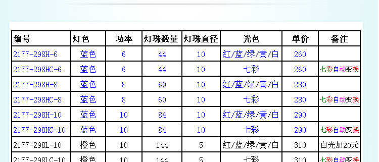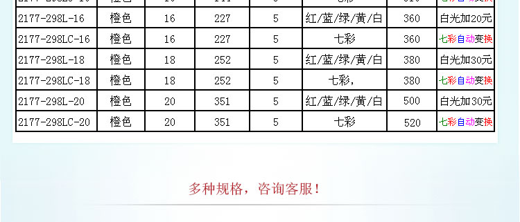 光色:七彩、單色(紅/藍/綠/黃/白)