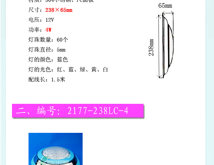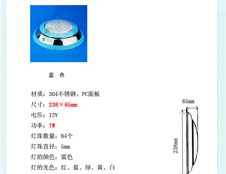 燈殼采用優質304不銹鋼材料,強度高的透明材料,透光性好,堅固耐用,防腐蝕性高。防水設計,多種顏色邊框可選,任君選擇。不需預埋,采用掛壁安裝。設有地線接頭,放心使用。