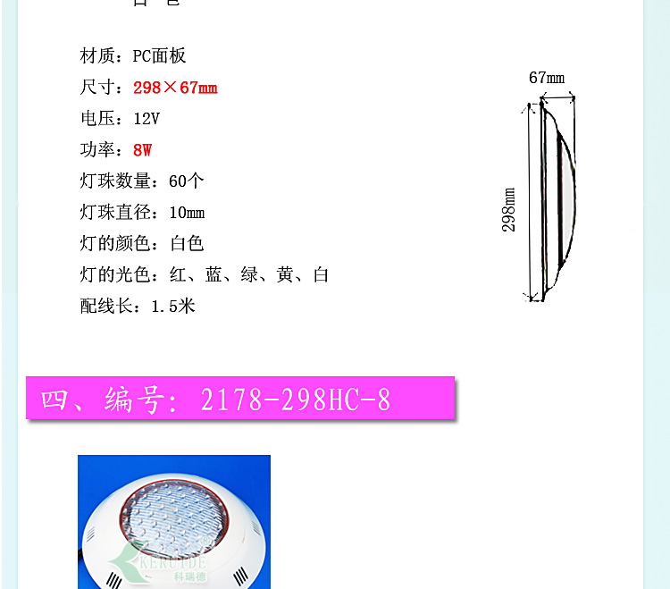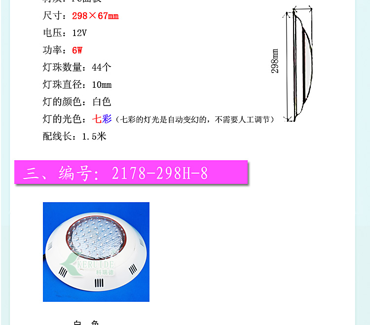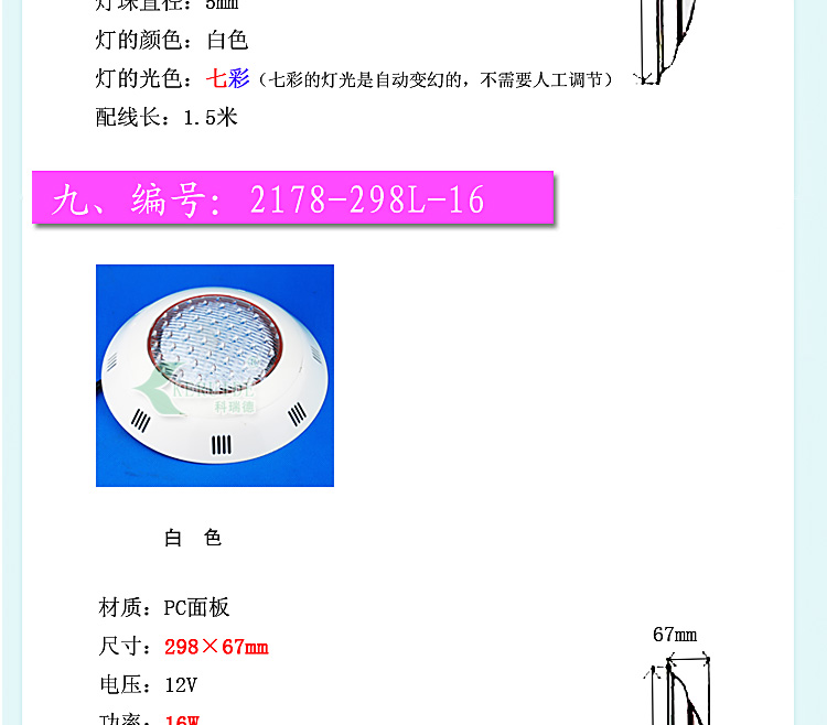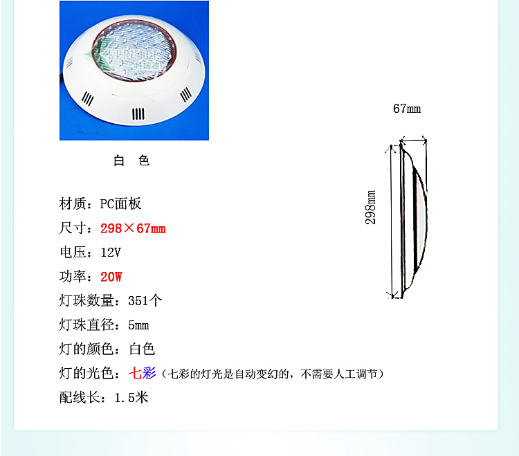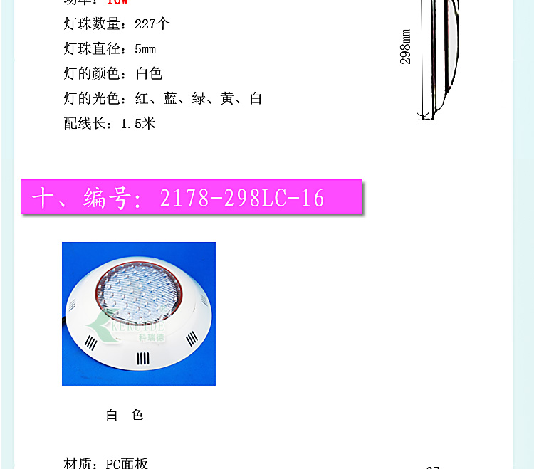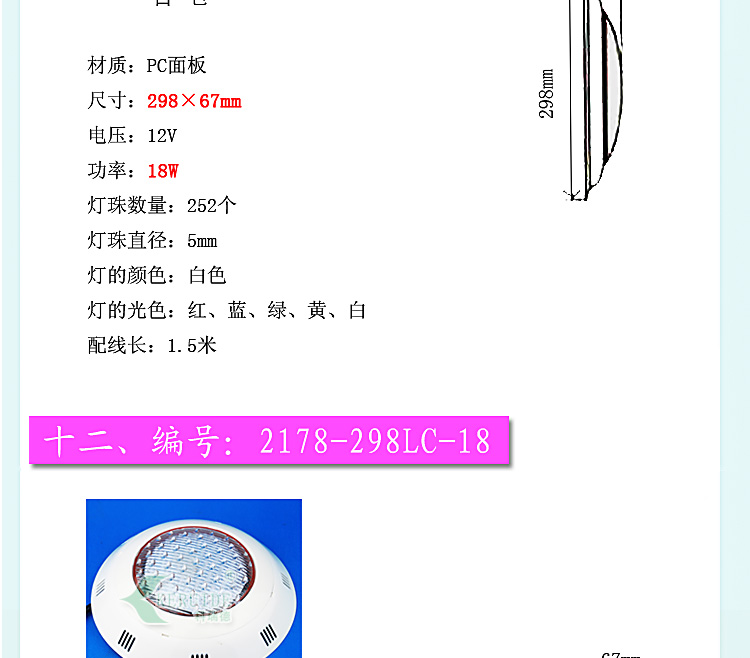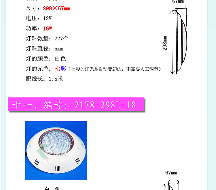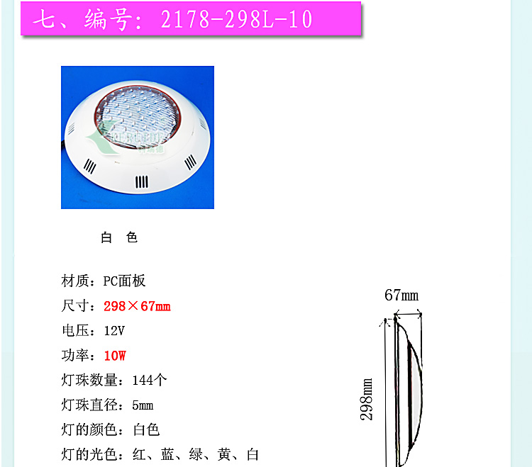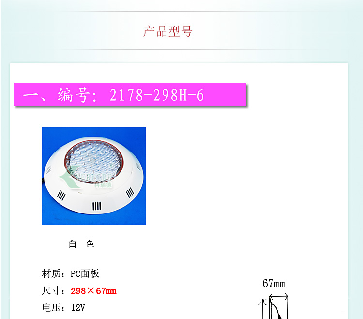 適合場所:應(yīng)用于各種噴泉、水池、游泳池及魚缸等照明裝飾。 更多咨詢客服!