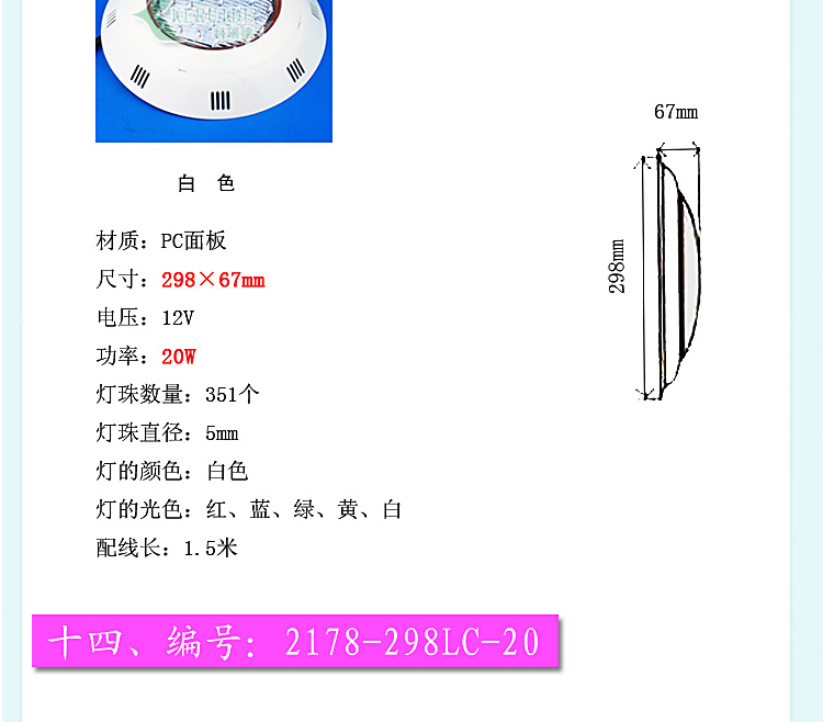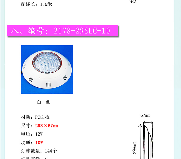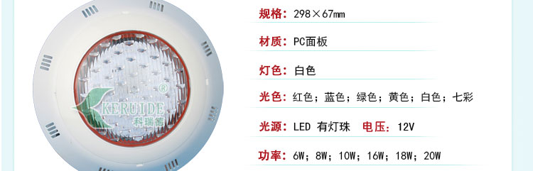 產(chǎn)品名:泳池掛燈,池壁掛燈,水下燈材質(zhì):PC面板