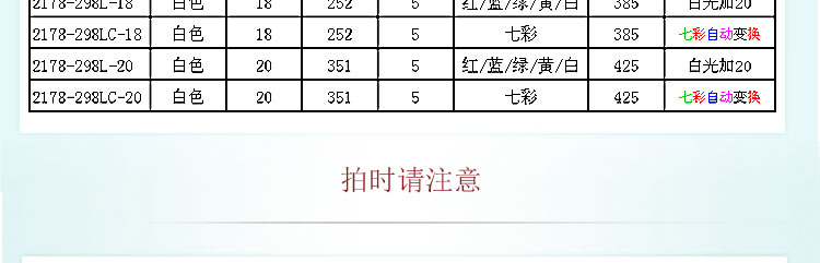 光色:紅/藍/綠/黃/白/七彩