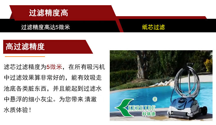 1,過濾精度高達5微米,能有效吸走池底各類臟東西,并且能起到過濾水中懸浮的細(xì)小灰塵。