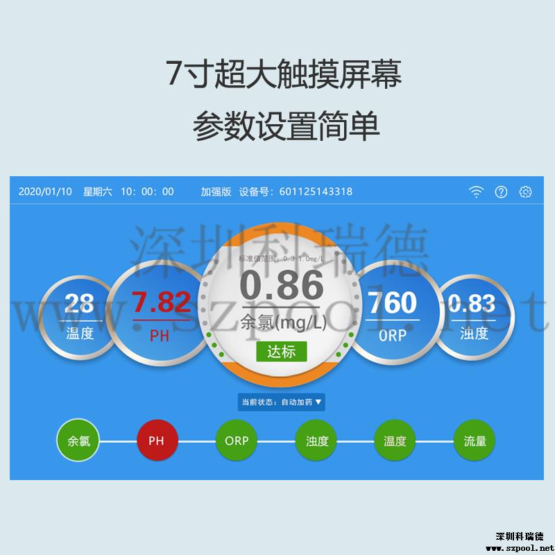 由于這些在線監測儀測不了氯,加藥時無法準確控制余氯,導致余氯指標經常不合格,使很多游泳池工作者工作難以開展,科瑞德基于用戶及實際需求,自主研發了一款能夠監測余氯、PH、溫度三大參數并且可24小時在線監測水質的泳池在線監測儀,還可以自動智能變頻控制加藥,擁有實用新型、發明專利(ZL201620124788.1/ZL201720455331.3/ZL201520947011.0),是具有自主知識產權的專利產品——衛普士余氯pH在線監測儀/水質在線監測儀.