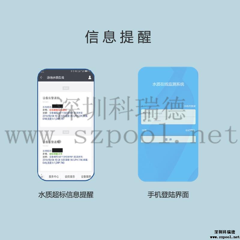 WEPOOLS游泳池水質在線監測系統有強大的后臺軟件及數據分析功能,監測數據無線傳輸儲存到云服務器無需安裝任何軟件即可隨時隨地通過手機、電腦查看水質情況: