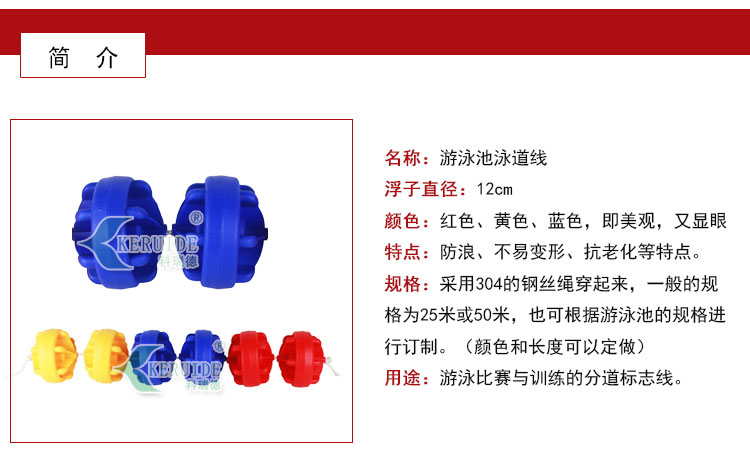 【規格】:25米或50米,采用304的鋼絲繩穿起來,也可根據游泳池的規格進行訂制。