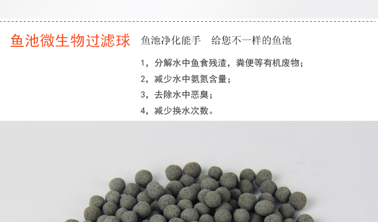 魚池微生物過濾球除了可以填充與砂缸中做過濾材料之外,還可以整包放進較大的魚缸中使用,可以起到分解魚糞,魚食殘渣,消除異味,凈化水質等作用。