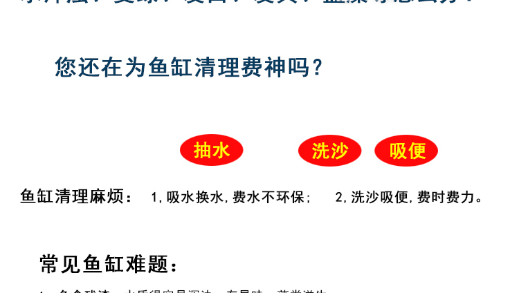 【溫馨提示】:由于養魚習慣及養魚的環境不同,所達到的效果不同,使用時間長短不同。請保持良好的養魚環境。