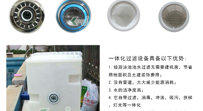 1.給游泳池池水過(guò)濾無(wú)需要建機(jī)房,節(jié)省用地面積及土建裝飾費(fèi)用;