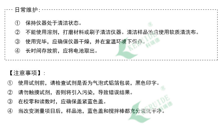④當(dāng)改變測(cè)量項(xiàng)目后,樣品池,藍(lán)色蓋和攪拌棒都充分清洗干凈。