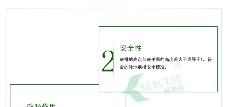 2、底排的高點與底平面的高度差大于或等于1,符合的泳池底排安全標準。