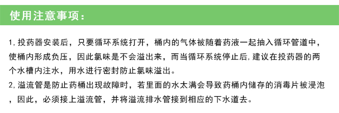 2,溢流管是防止藥桶出現故障時,若里面的水太滿會導致藥桶內儲存的消毒片被浸泡,因此,必須接上溢流管,并將溢流排水管接到相應的下水道去。