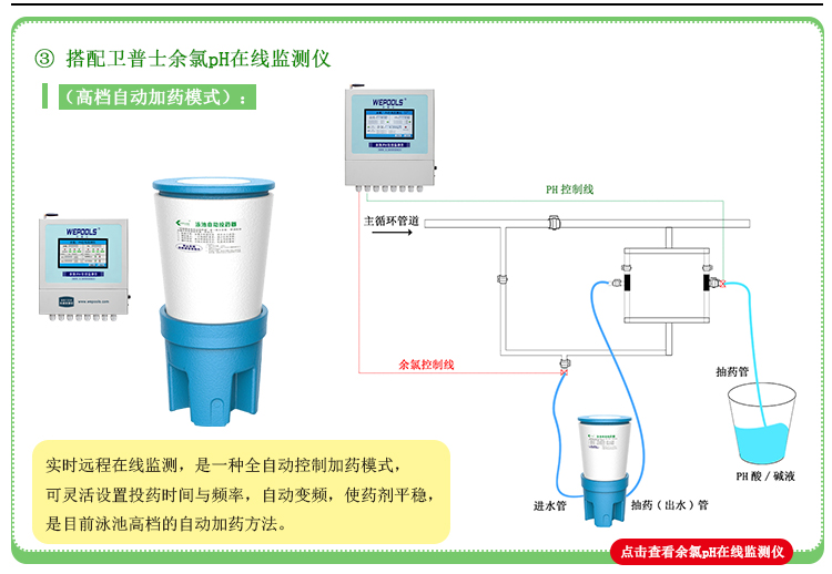 衛普士余氯PH在線監測儀+科瑞德泳池自動投藥器=全自動監測投藥系統