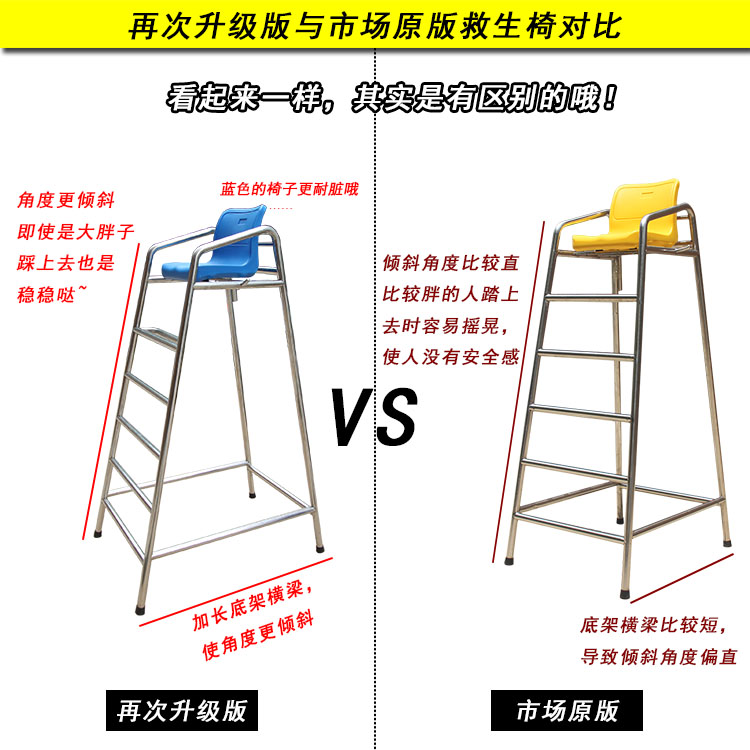 游泳池救生椅是救生員從高處觀察泳區情況的專用座椅,當泳池內有人發生意外時,救生員能夠從救生椅處第一時間發現情況,并且迅速地采取救治措施,可以說救生椅是泳池及海濱廣場等游樂場所的安全輔助措施,屬于游泳池救生設備的一種。