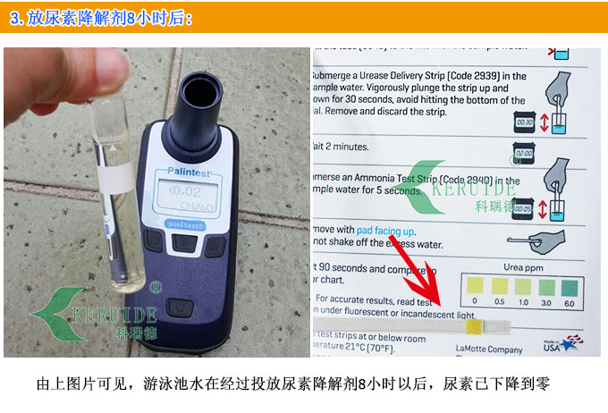 5.一周使用1次尿素降解劑,能有效防止尿素超標。由于游泳的人數增多會加快藥效消耗,所以具體使用情況要根據消耗程度調整 ;