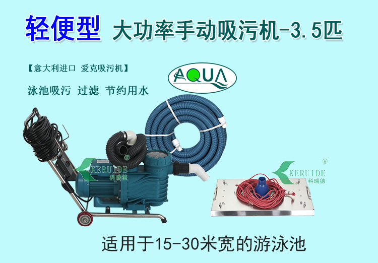 本款吸污機為愛克大功率+輕便型的游泳池手動吸污機,產品型號為2064-B;適用場所:15-30米寬游泳池。