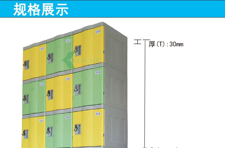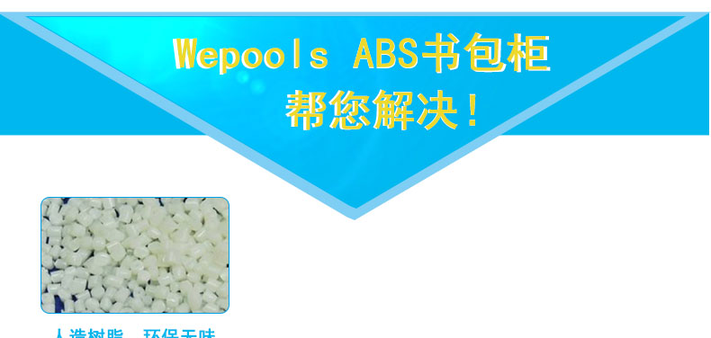 此學生書包柜采用ABSA原料,泳大型鋼鑄模具通過注塑機將ABS顆粒加色母注塑而成,具有防潮,防腐且