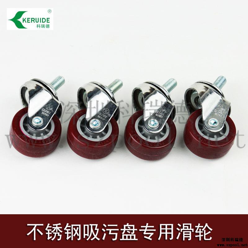 滑輪,為吸污盤輪子,手動泳池吸污機配件之一,是不銹鋼吸污盤滑輪,一般大型的手動吸污機都有帶銹鋼吸污盤,吸污盤由不銹鋼制成,相對其他的普通吸污頭,重量是其他吸污頭的幾倍到十幾倍。所以吸污盤的滑輪也需要選擇一款質(zhì)量可靠的滑輪。本款滑輪是針對重量非常重的不銹鋼吸污盤。