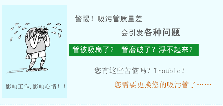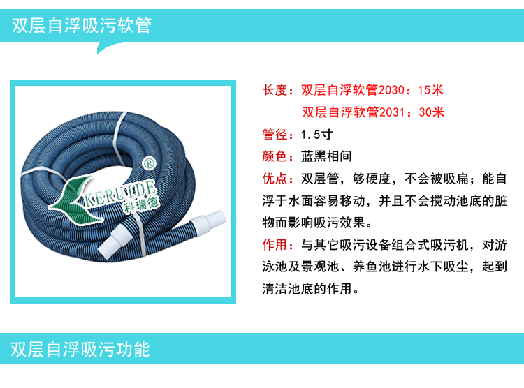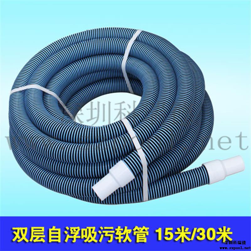 游泳池吸污管:是游泳池吸污機的配件,用于連接水泵和吸污頭,本吸污管為雙層自浮塑料軟管,也叫游泳池吸污喉。