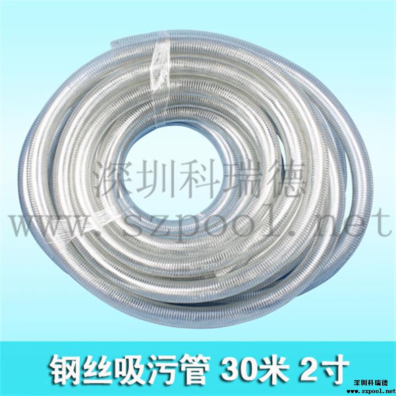 游泳池鋼絲吸污管:本吸污管為帶鋼絲的塑料軟管,也叫鋼絲管,管徑為2英寸(50mm),長度為30米。