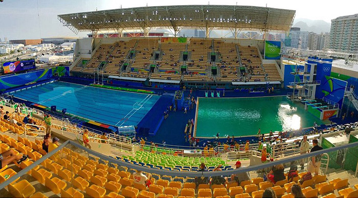 這一屆的里約奧運會可維娛樂風十足啊,吸足了觀眾的眼球,先是各國運動員被搶,讓大家坐在家中都忍不住為運動員的安全捏一把汗,再是孫楊游泳排第二被霍頓損“嗑藥”,引發中國網友對他的各種炮轟,賺足了頭條,這邊新聞還熱度沒過,中國奧運游泳女將傅園慧的一句“洪荒之力”表情包立馬又風靡了全球,以上這些新聞都是跟人物事跡有關的,誰知道沒多久一個眼尖的網友發現奧運游泳池的池水是居然是綠色的,運動員跳進去以后,只見一框綠油油的水,人卻不見了,這一發現,立馬就把這個游泳池給推到了風頭浪尖,讓這個奧運游泳池過了一把頭條引。