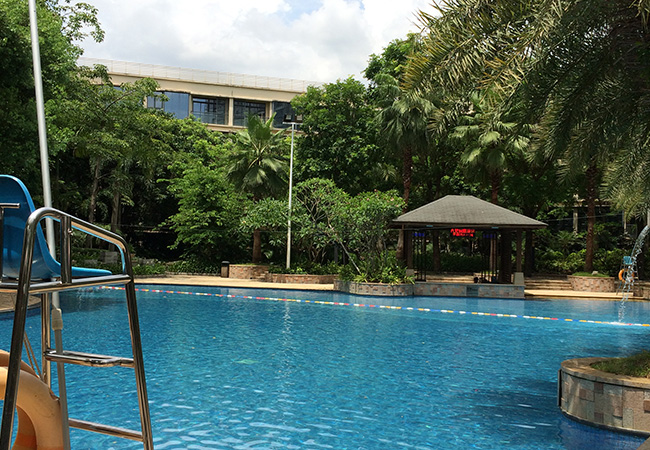 11.高溫陰雨的悶熱季節,應特別注意池水顏色,如出現黃綠現象,應及時投加硫酸銅除藻劑或加大投氯量。