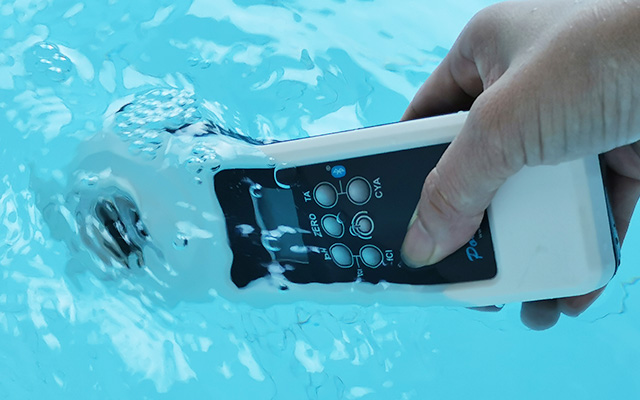 普通的速測盒是檢測不了氰尿酸的,可以使用帶有電子讀數的水質檢測儀,普量水質檢測儀是一款多參數手持式電子光度計,能檢測池水:氰尿酸、余氯、總氯、pH、化合氯等13個項目指標,準確可靠,使用方便,機身自帶樣品槽,直接伸入水中取樣,整機IP68防水設計,不用擔心進水。
