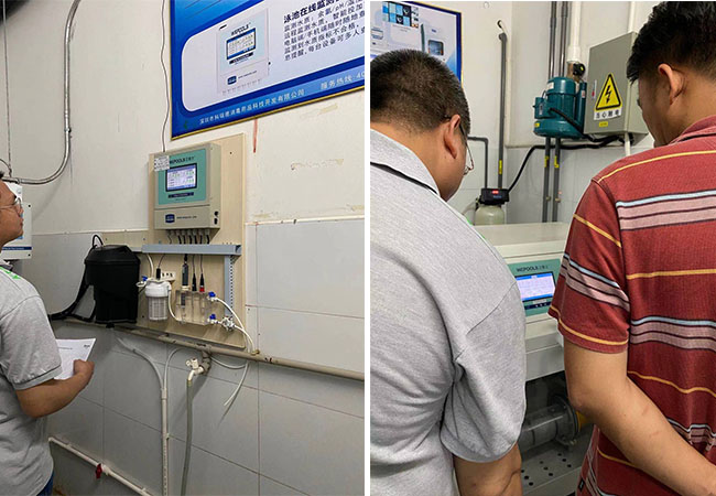 目前水質在線監測系統已在各城市游泳館實施,據了解,目前泳池在新辦理衛生許可證時,不僅需要有相關的安全救生設備,還必須要求有安裝一套能測:余氯、pH、溫度、ORP、濁度等多項參數的在線監測系統。