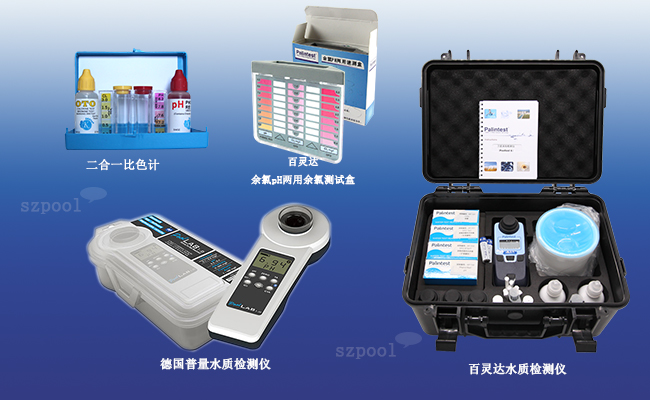 1.?使用水質(zhì)檢測工具,檢測一下池水的余氯和pH值。常見的檢測工具有余氯pH兩用測試盒,英國百靈達(dá)水質(zhì)檢測儀,德國普量水質(zhì)檢測儀。