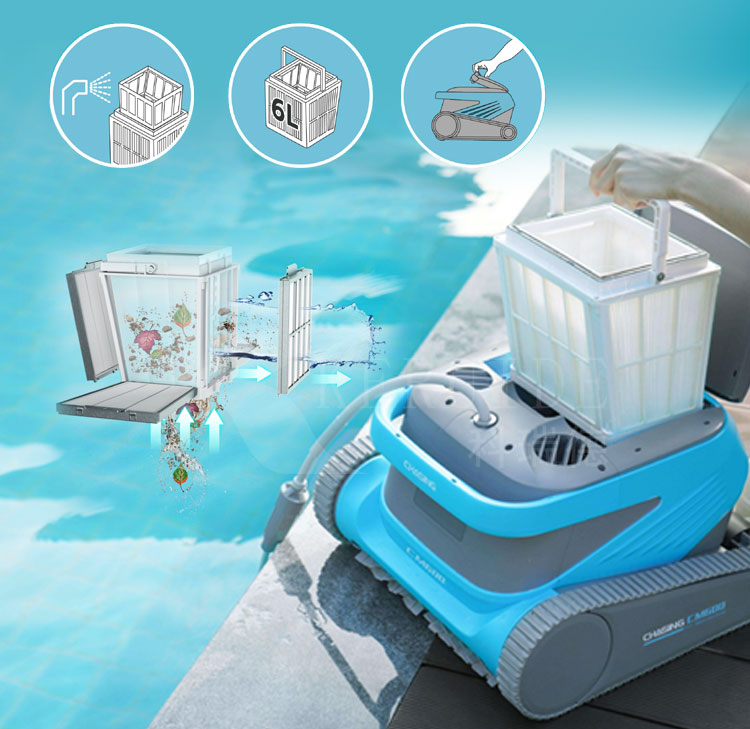 2、智能路徑規劃:采用了CHASING S-clean技術,適合各種不同形狀的泳池,可覆蓋整個池底清潔,360°不放過任意地方,遇障礙物自動避開{掉頭、轉向、倒退}的功能。